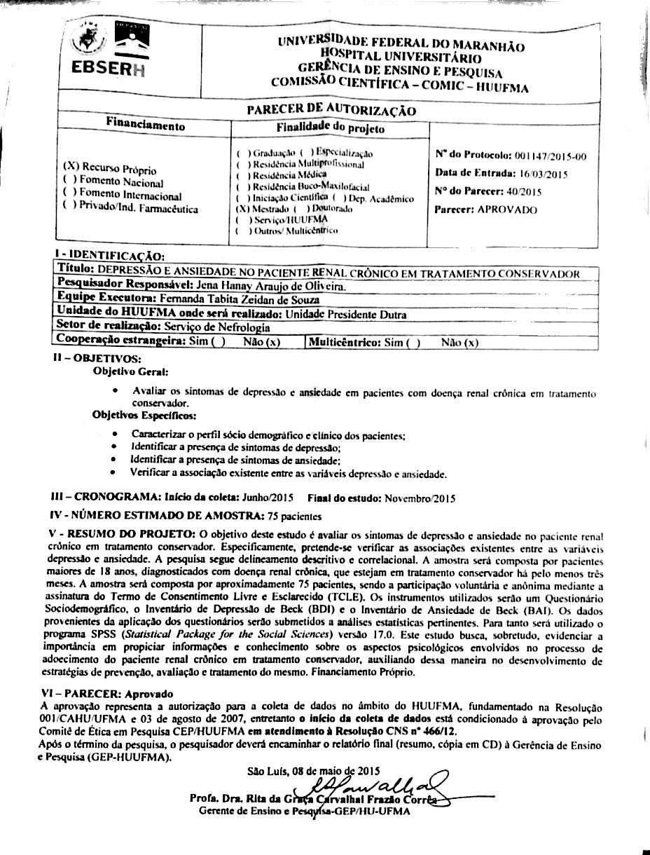 Paes de Barros, B., Nishiura, J. L., Heilberg, I. P., & Kirsztajn, G. M. (2011). Ansiedade, depressão e qualidade de vida em pacientes com nefropatia familiar. Jornal Brasileiro de Nefrologia, 33(2), 120-128.